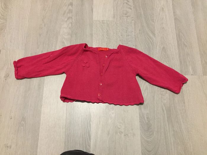 gilet rose détail petit noeud, boutons. taille 18 mois #18moisfilleamelie08000cm