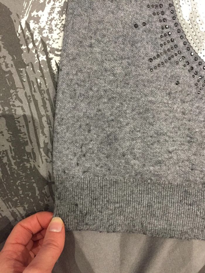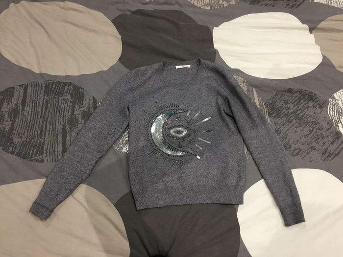 pull court motif en strass, quelques bouloches mais donne un style au pull pas gênant à porter. taille M #taillemamelie08000cm