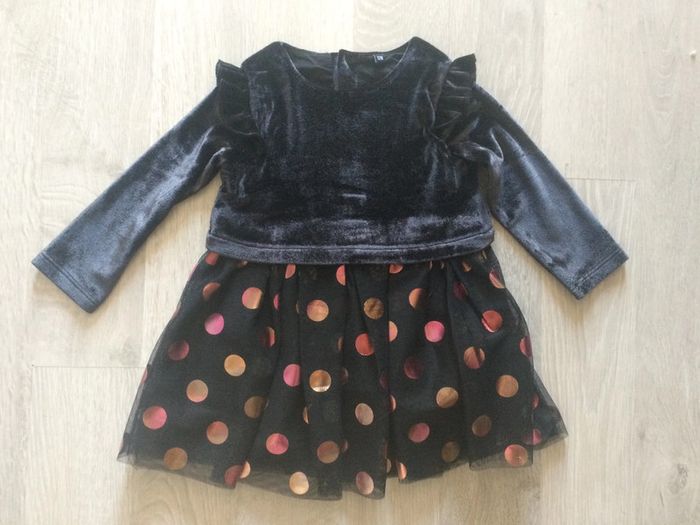 Robe haut matière velours, bas matière tulle avec des ronds colorés. Taille 12 mois #12moisfilleamelie08000cm