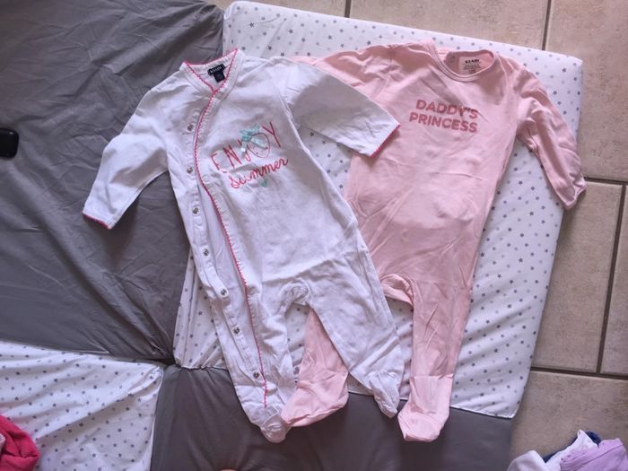 lot 3 pyjamas fins - rose avec ouverture dans le dos - blanc ouverture sur le devant Taille 12 mois #12moisfilleamelie08000cm