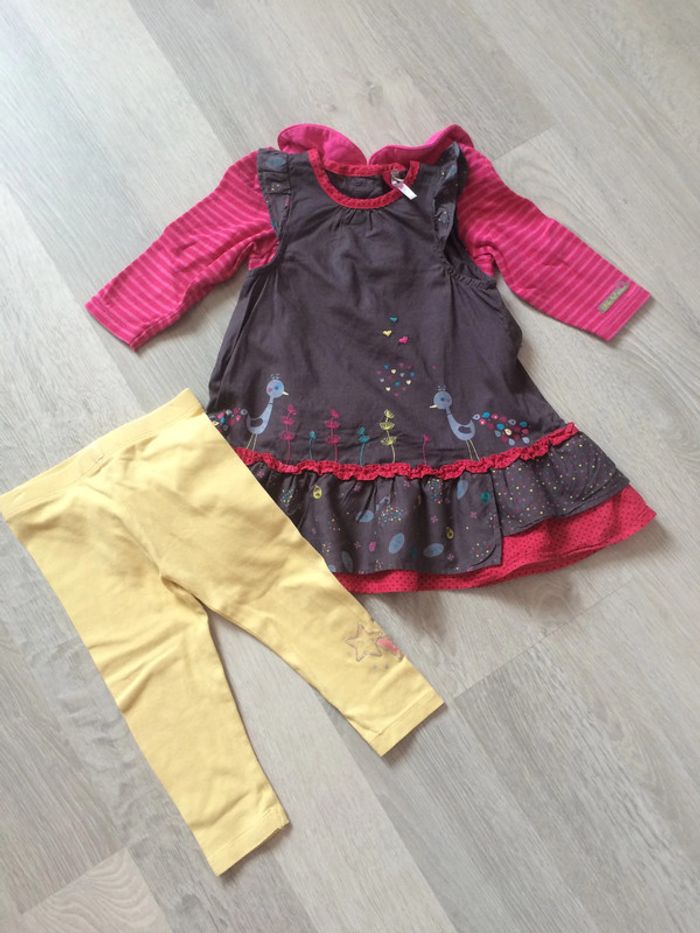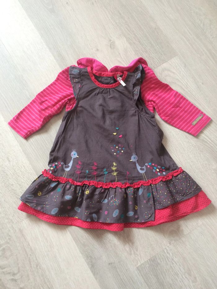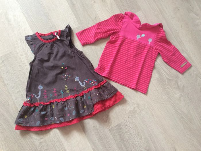 Ensemble comprenant une robe fine et un t shirt manches longues, je donne avec un legging marque 3 pommes qui peut aller avec la tenue. Taille 9 mois #9moisfilleamelie08000cm