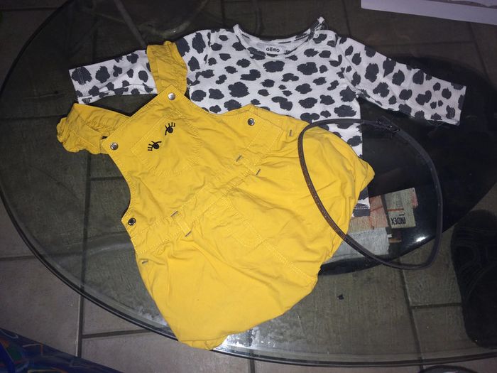 Ensemble robe fine + T Shirt manches longues léopard + Ceinture. Taille 6 mois. #6moisfilleamelie08000cm