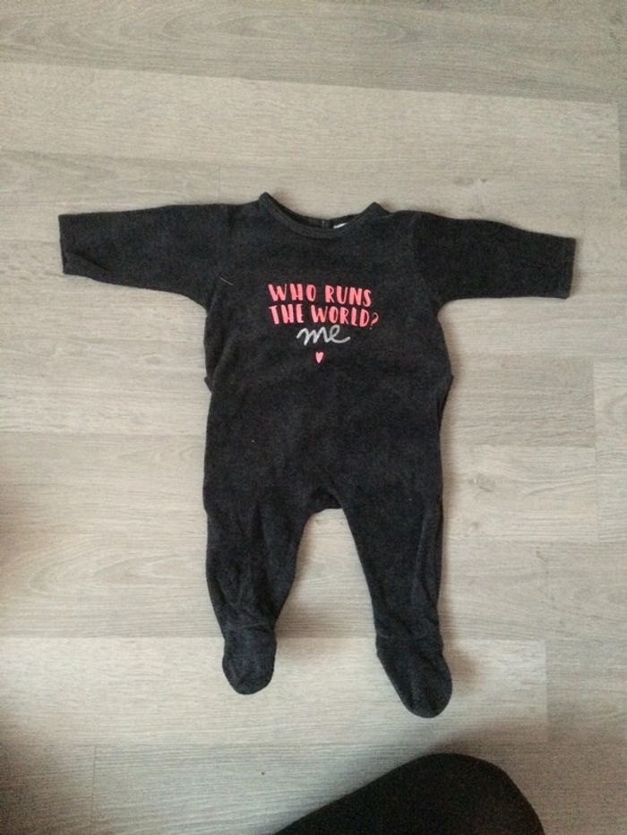 Pyjama gris foncé avec message en rose. Taille 3 mois #3moisfilleamelie08000cm