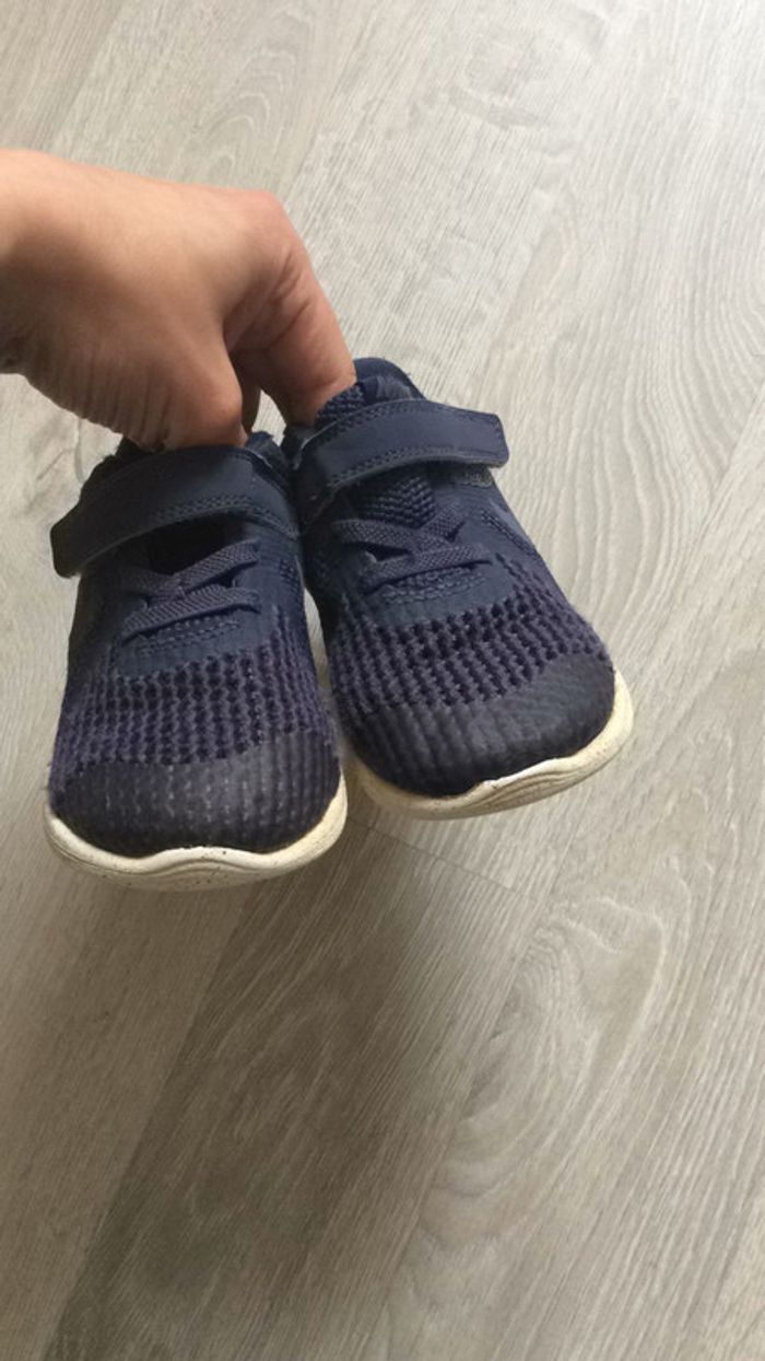 Baskets souples achetées chez Décathlon au rayon baby gym avec les tenues de sport. très confortables. usure normale, pas de trou ou de taches. passées en machine avant la vente. #chaussuresgarçonamelie08000cm