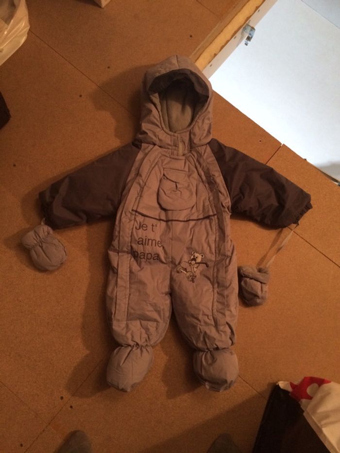 combinaison épaisse molletonnée. Idéal pour aller dans la neige ou grosse journée fraîche. Taille 6-9mois. Jamais portée car cadeau de naissance mais la taille ne correspondait pas à la saison où bébé en aurait eu besoin. #6moisgarçonamelie08000cm #9moisgarçonamelie08000cm #mixteamelie08000cm