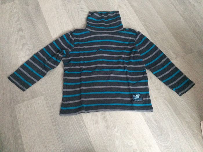 T shirt à rayures col roulé. Gris anthracite gris clair et turquoise #4ansgarçonamelie08000cm