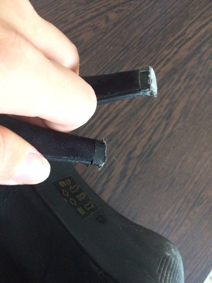 chaussures à talons aiguilles en nubuck. Toujours entretenues avec produits adaptés à la matière.on pied n’a jamais été en contact direct avec la semelle car je mettais toujours une petite semelle fine. Il y a juste un petit trou (voir photo) sous une chaussure causé par un caillou mais ne gêne en rien du tout. Paire de chaussure achetée 35€. #chaussuresamelie08000cm