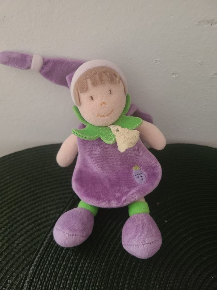 Doudou poupée lutin fille aubergine DOUDOU ET COMPAGNIE