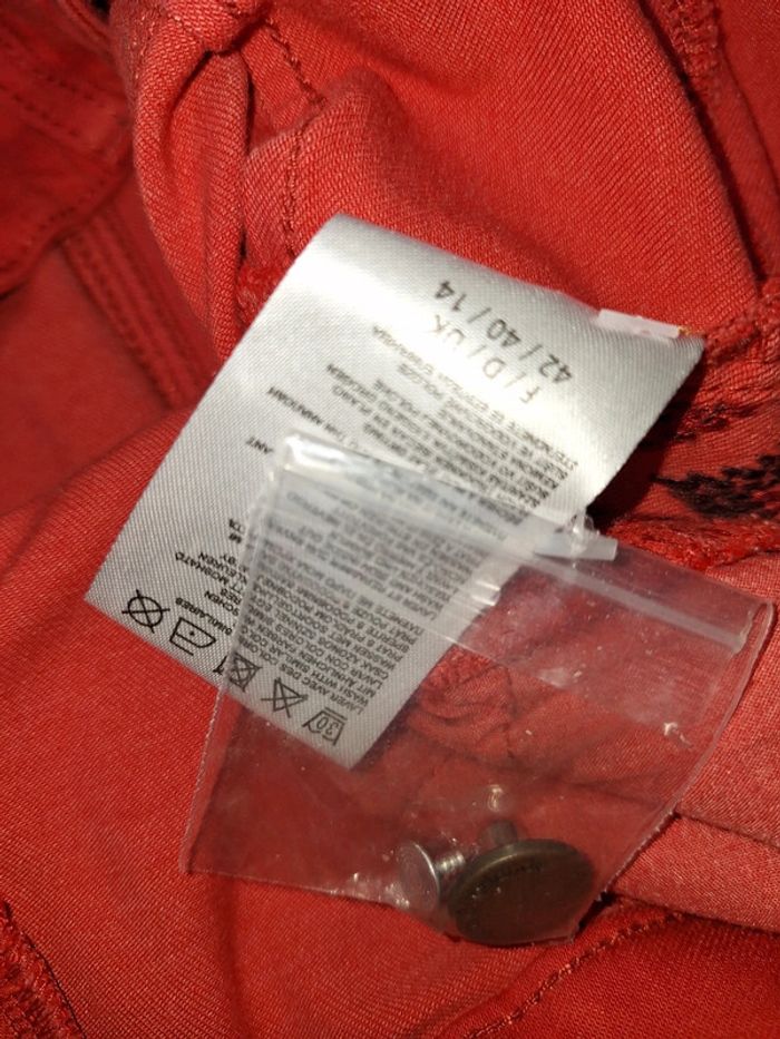 Jamais porté ( bouton de rechange encore fixé à l'intérieur ) 2 poches avant, 2 poches arrière Liseré sur les côtés Taille 42 55% coton 33% viscose 10% polyester 2% elasthane Taille à plat : 44 cm Longueur : 99 cm #julieguerlande #julieguerlande42 #felindra57taille42