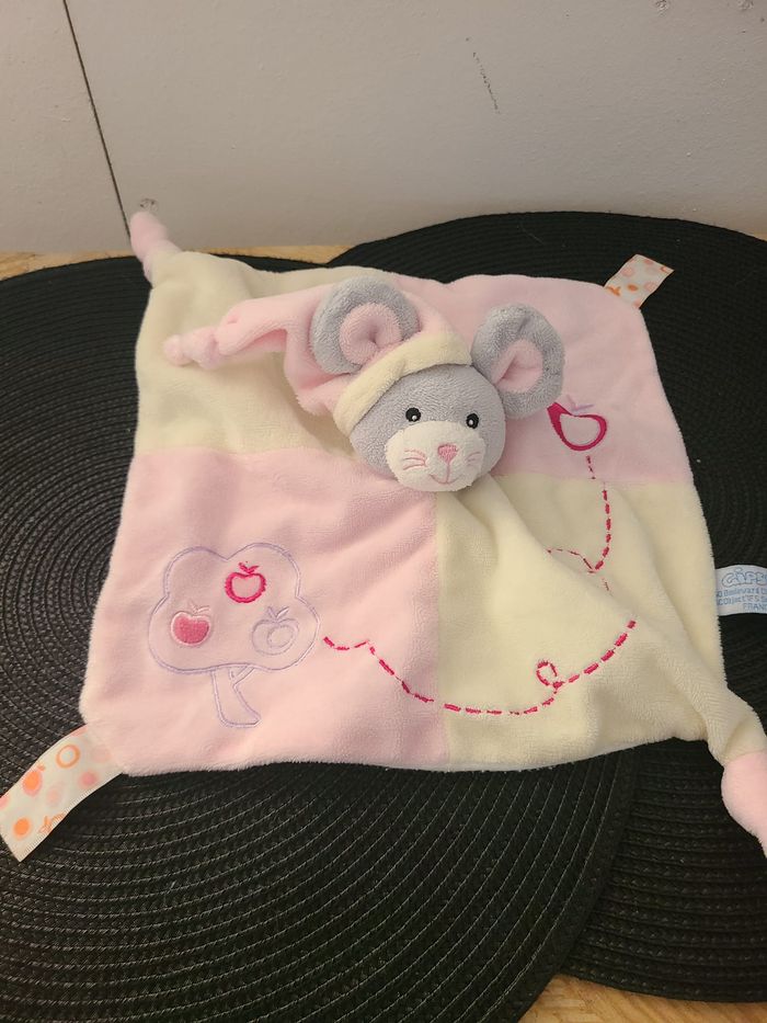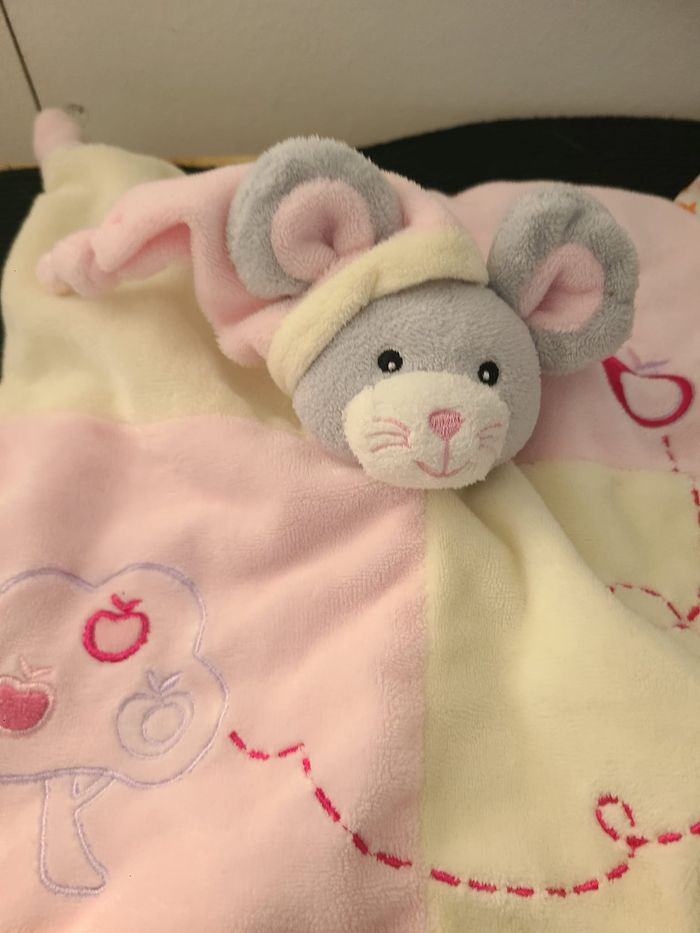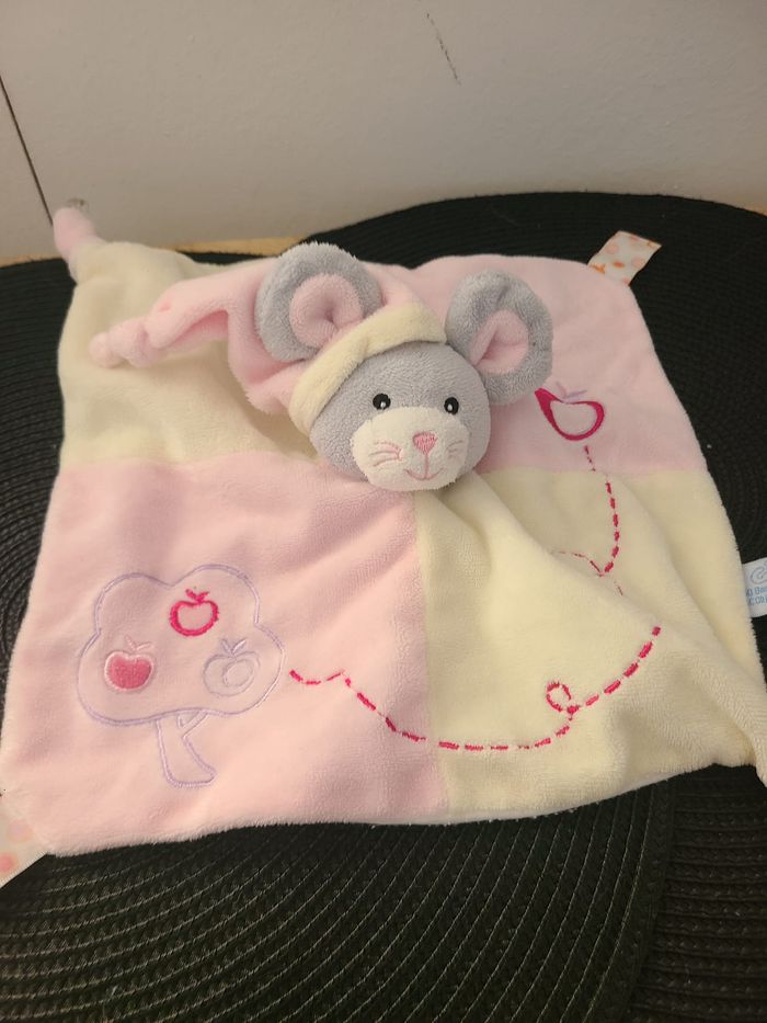 Doudou plat souris rose blanc pommes NICOTOY - photo numéro 1