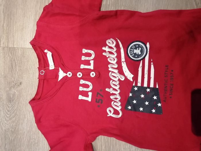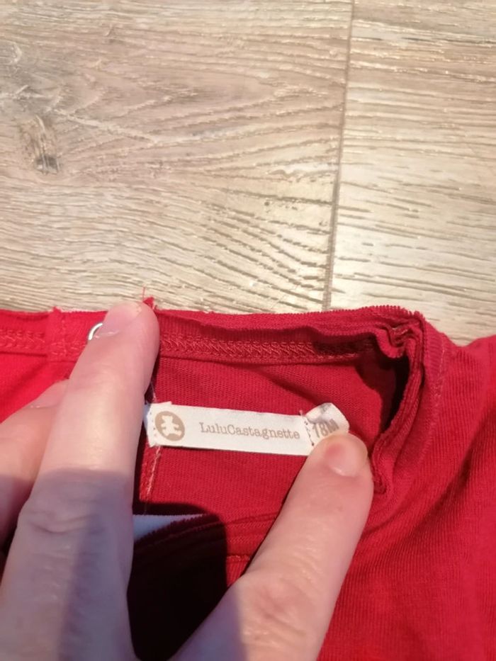 Bonjour, je vends ce tee shirt à manches longues rouge de la marque lulu castagnette taille 18mois en très bon état. Lavé maison non fumeur.