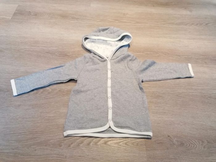 Bonjour, je vends ce gilet gris et blanc de la marque Lupilu taille 23mois en très bon état. Lavé maison non fumeur.