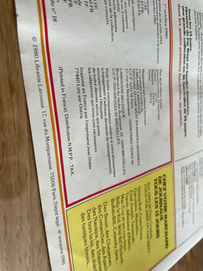 BD histoire du Far West Davy Crockett Larousse 1980 Couverture souple