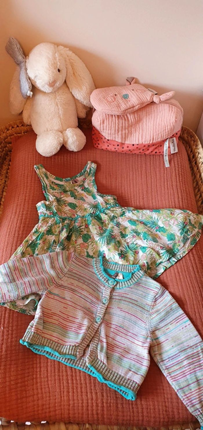 Ensemble Orchestra taille 6 mois en très bon état. Composé d'une robe entièrement boutonnée dans le dos, et doublée, et d'un gilet en coton. #le6moisdenina