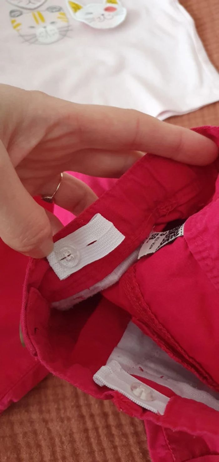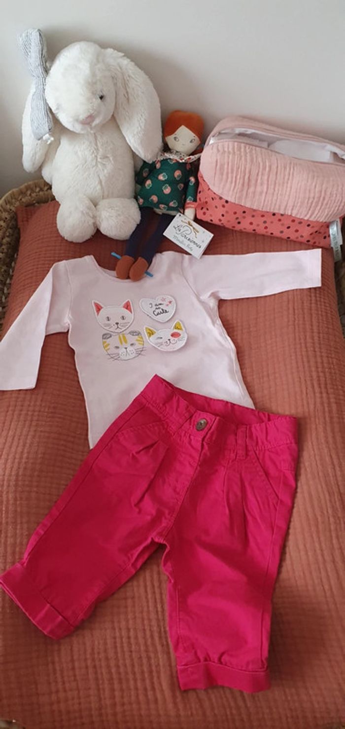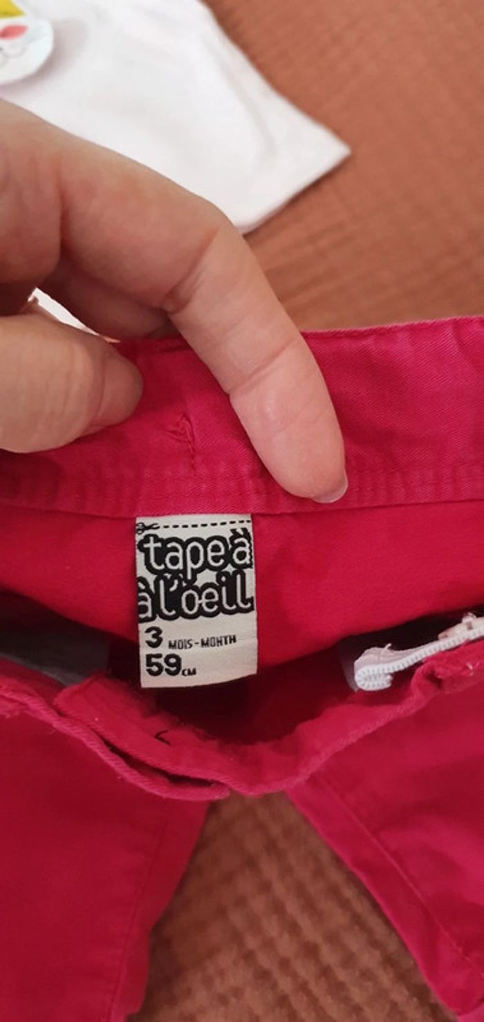 Ensemble composé de 2 pièces : 🌸Pantalon forme chino rouge, marque TAO / Tape à l'œil, 🌸Tee-shirt rose pâle, marque Z / Grain de blé, 🌸Taille 3 mois, 🌸En très bon état, peu porté. #le3moisdenina