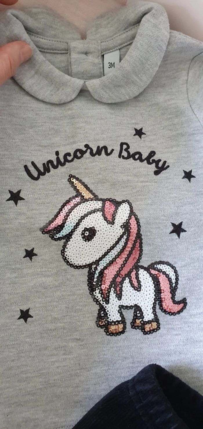 Ensemble composé de 2 pièces : Legging en maille velours noir, Robe grise en jersey avec col claudine et motif en sequins, Sans marque, Taille 3 mois, Neuf sans étiquette, lavé mais jamais porté. #le3moisdenina
