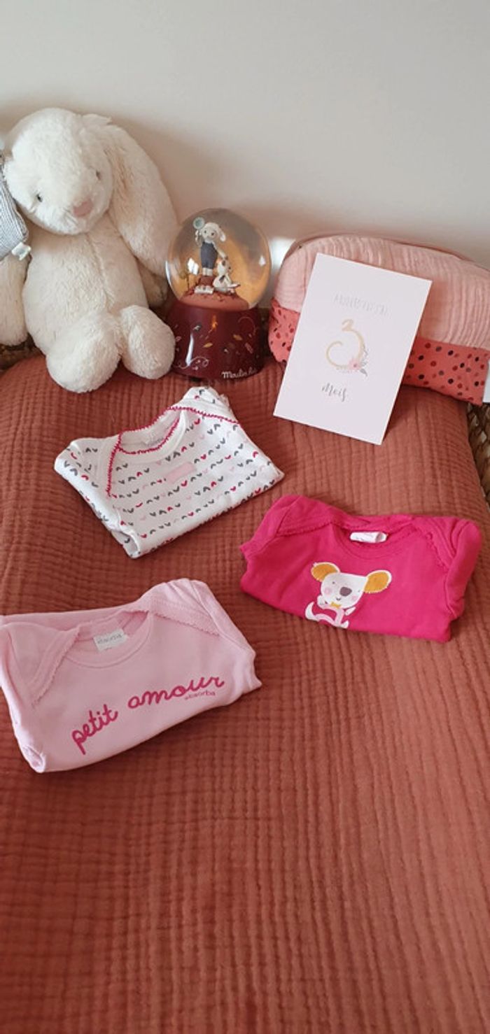 Lot de 3 bodies : 🌸 Manches courtes, 🌸 Taille 3 mois / 59 cm, 🌸 Absorba, 🌸 En excellent état, très peu portés. #le3moisdenina