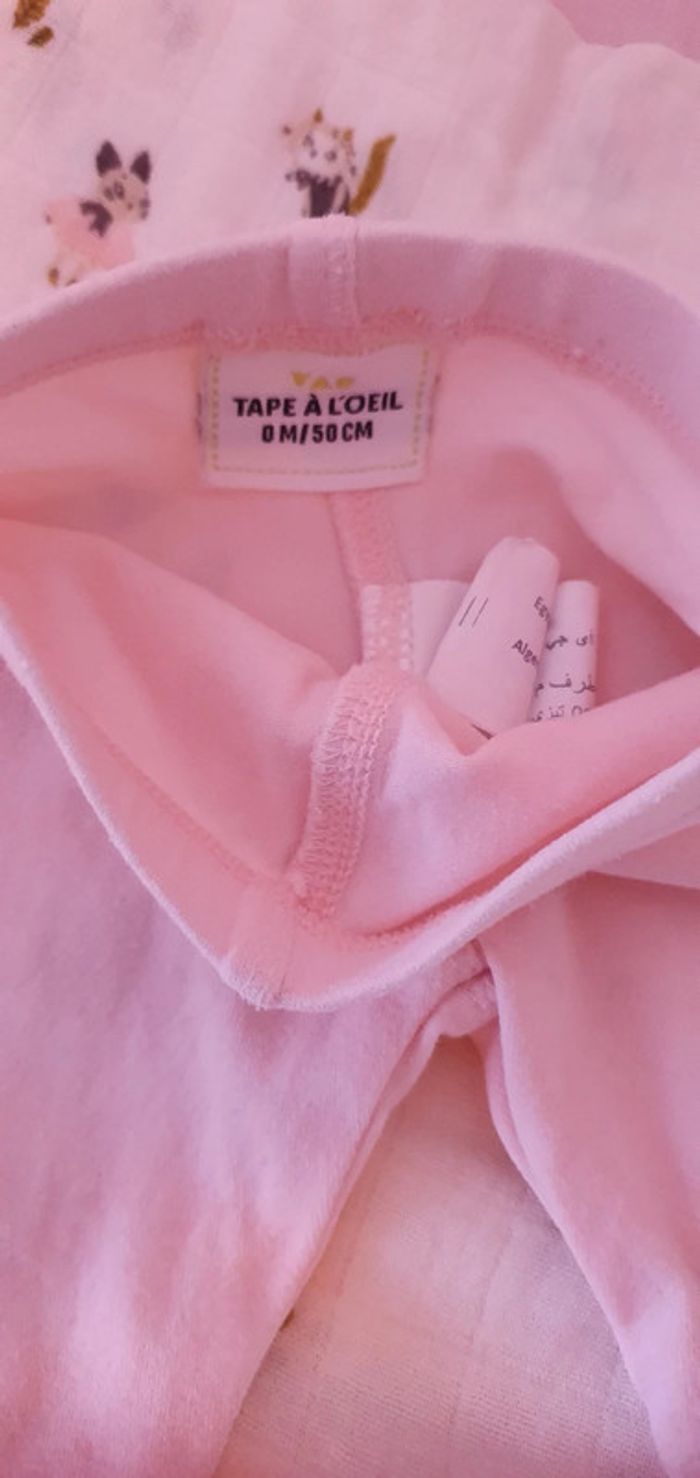 Legging de couleur rose pâle : 🌸 En coton, 🌸 Taille 0 mois / Naissance / 50 cm, 🌸 Tape à l'œil, 🌸 Neuf sans étiquette : jamais porté car erreur de taille, juste lavé pour être rangé dans l'armoire. #le0moisdenina