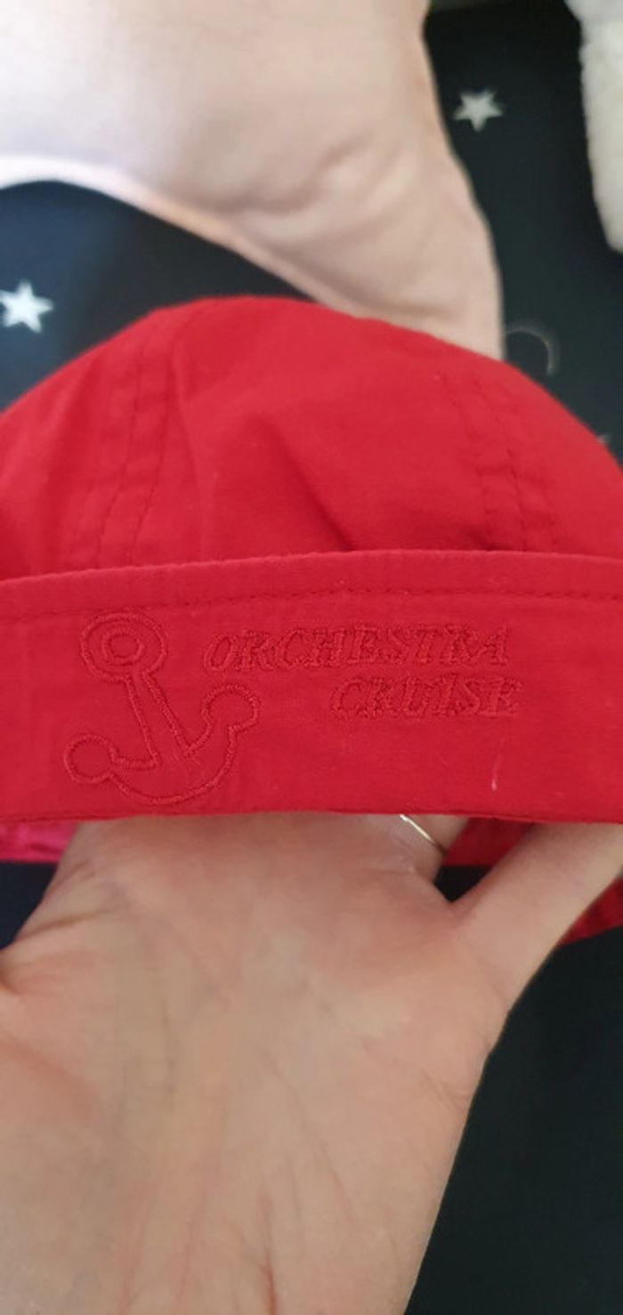 Chapeau rouge Orchestra taille 44 cm en très bon état. Peu porté car acheté trop petit. Mixte. Broderie esprit marin.