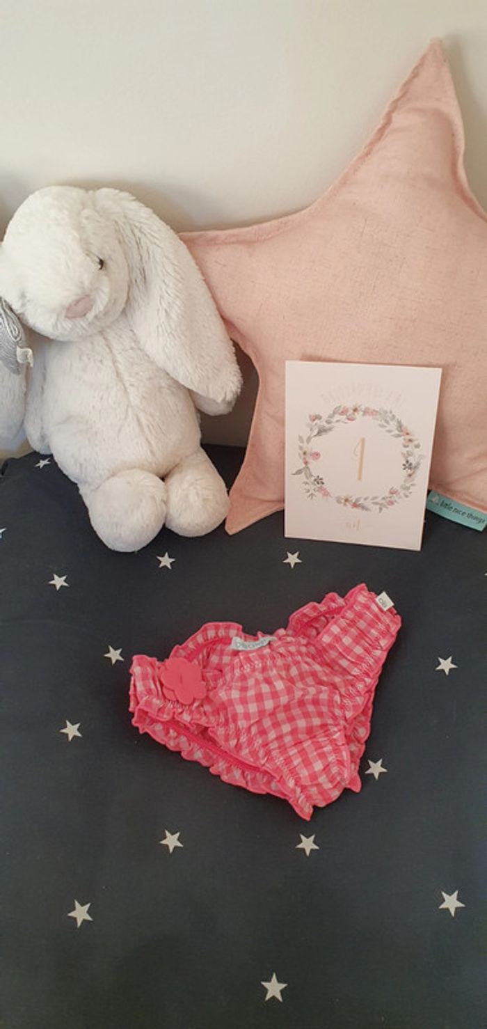 Culotte de bain Obaibi taille 12 mois en excellent état. Portée quelques heures seulement. Offerte trop juste à ma fille ! #le12moisdenina