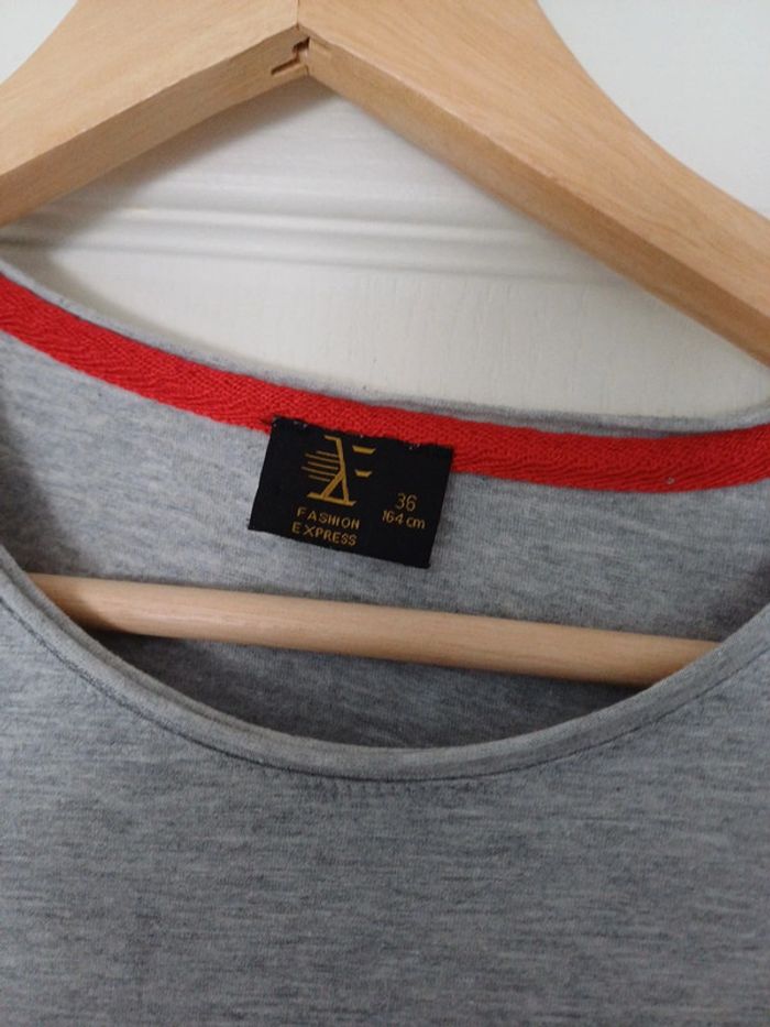 T-shirt gris Une petite tache sur le côté sous l'aisselle. Mais rien de très voyant. Taille 36. #taille36 #taille36lexou_77 #tshirtfemme36