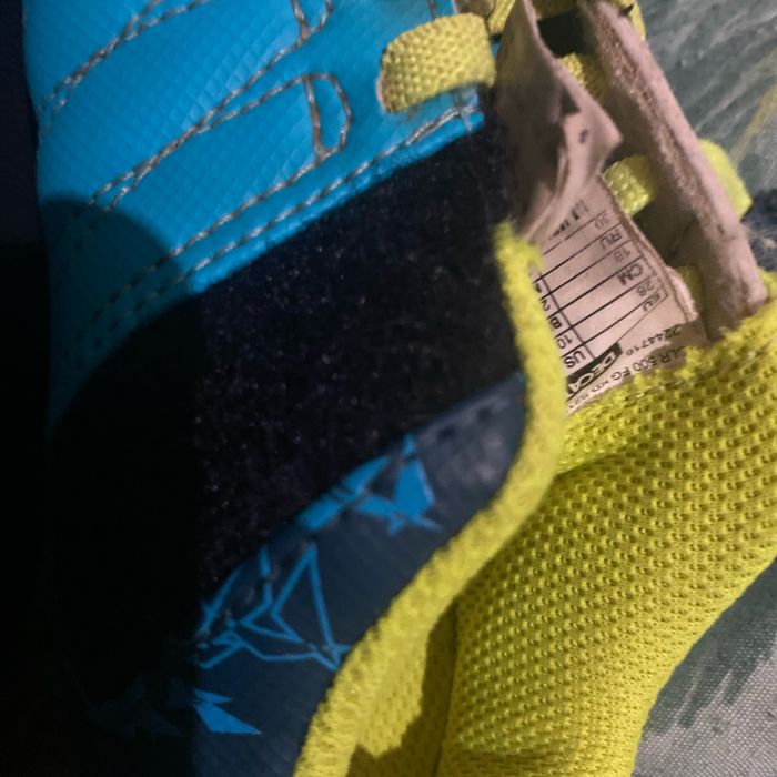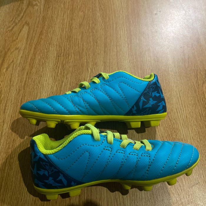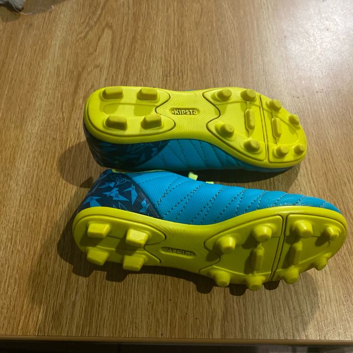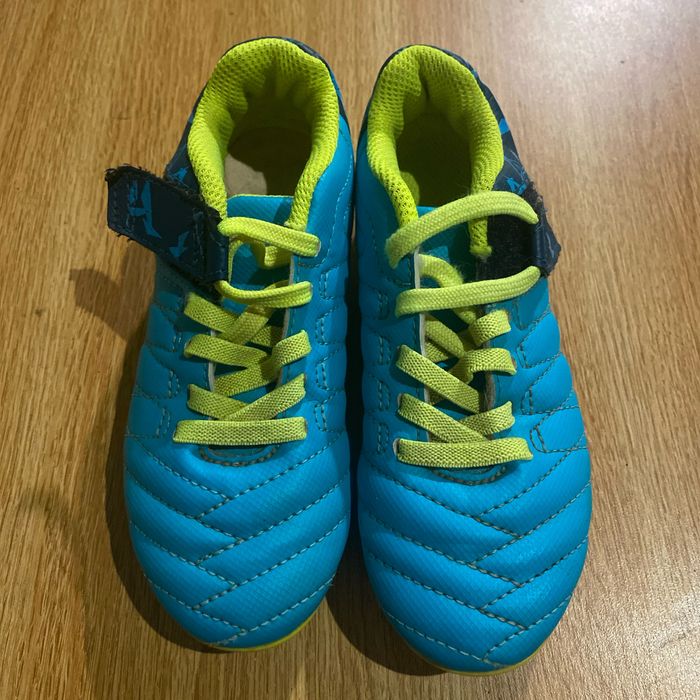 Chaussures foot/rugby taille 28 À Scratchs et lacets Couleur bleu/vert Crampons moulés Décathlon KIPSTA En très bon état