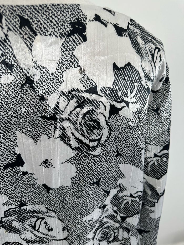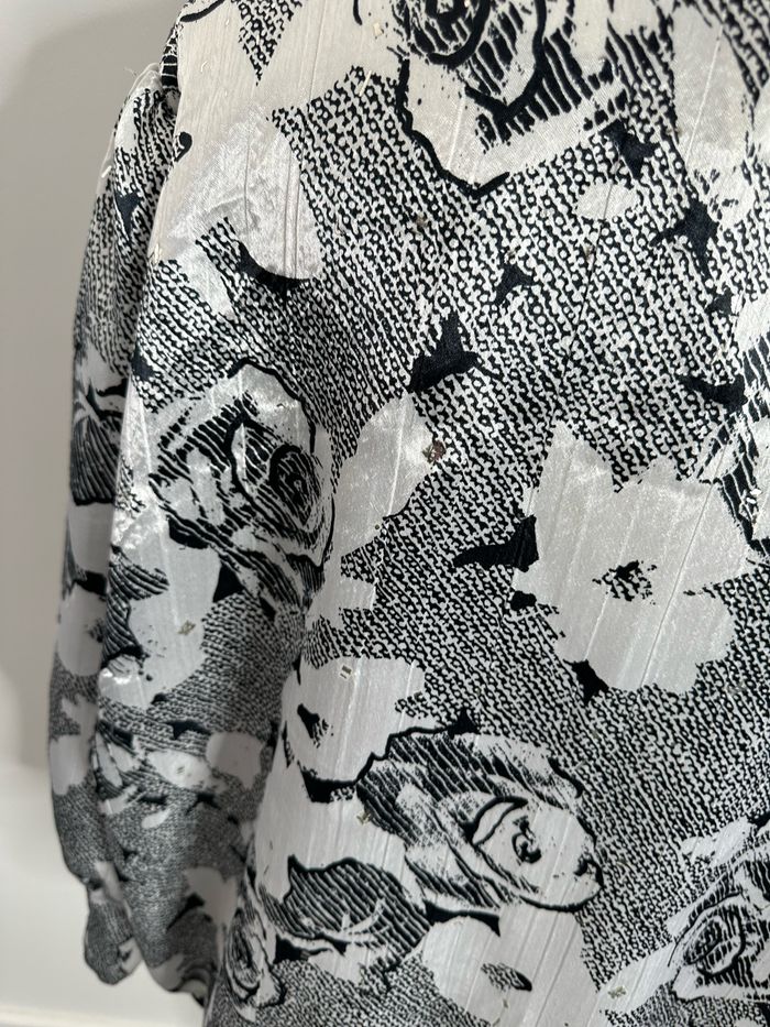 Blouse oversize satinée blanche noire argentée à fleurs Vintage T44 XXL - photo numéro 10