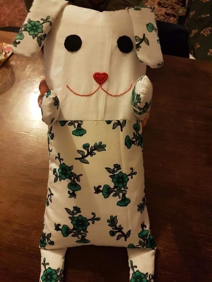 Petit coussin fait à la main en forme de chien, C'est unique, taille : 34×16 cm.