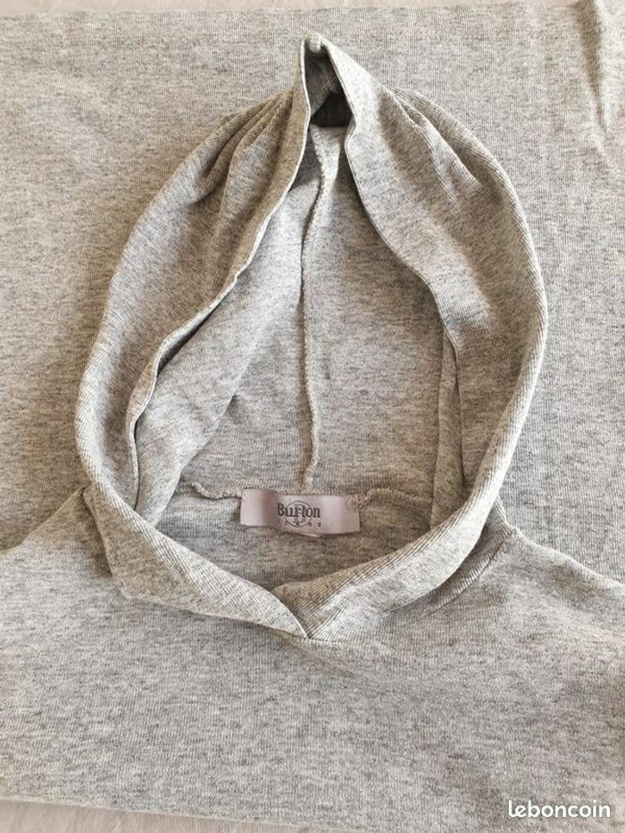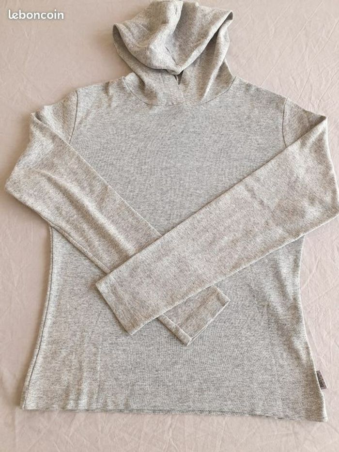 T-shirt hoody gris chiné 50% coton - 50% acrylique = bonne tenue Excellent état