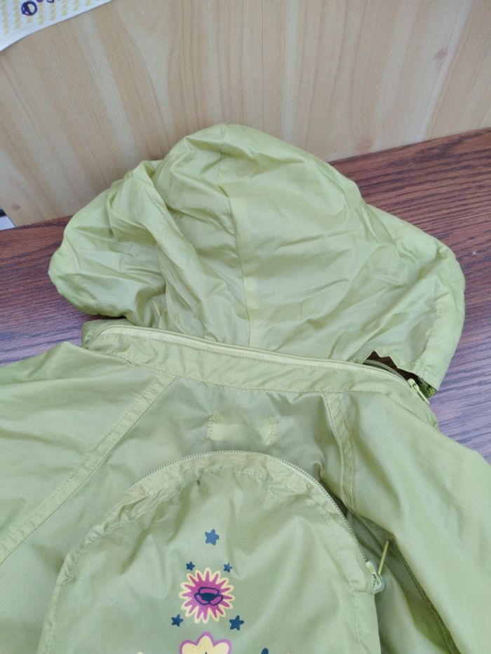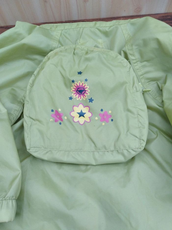 K-way Fille 3 ans Vert avec petit sac à dos décoré La capuche peut se ranger dans le col