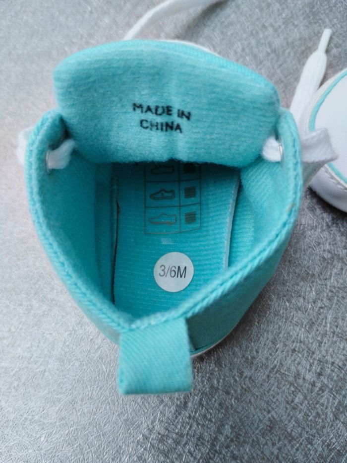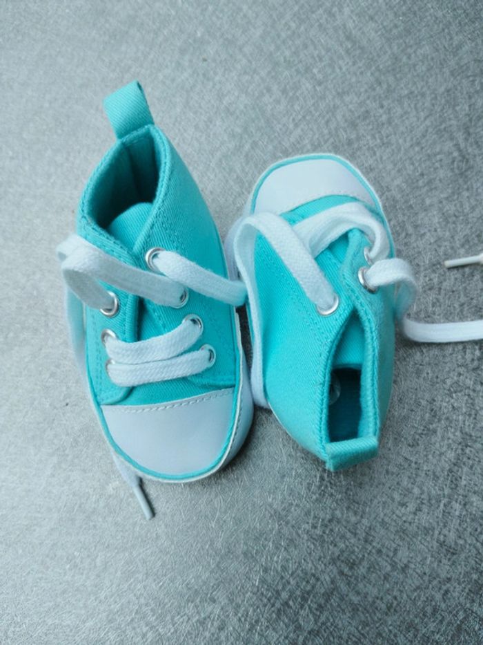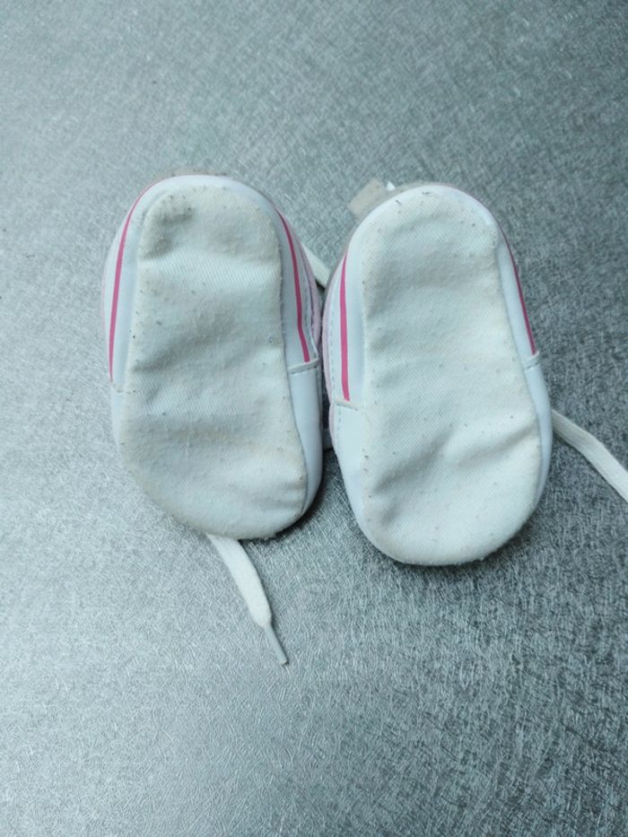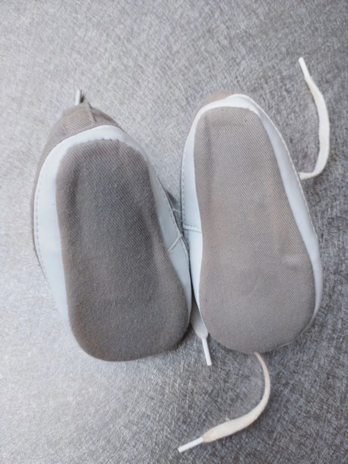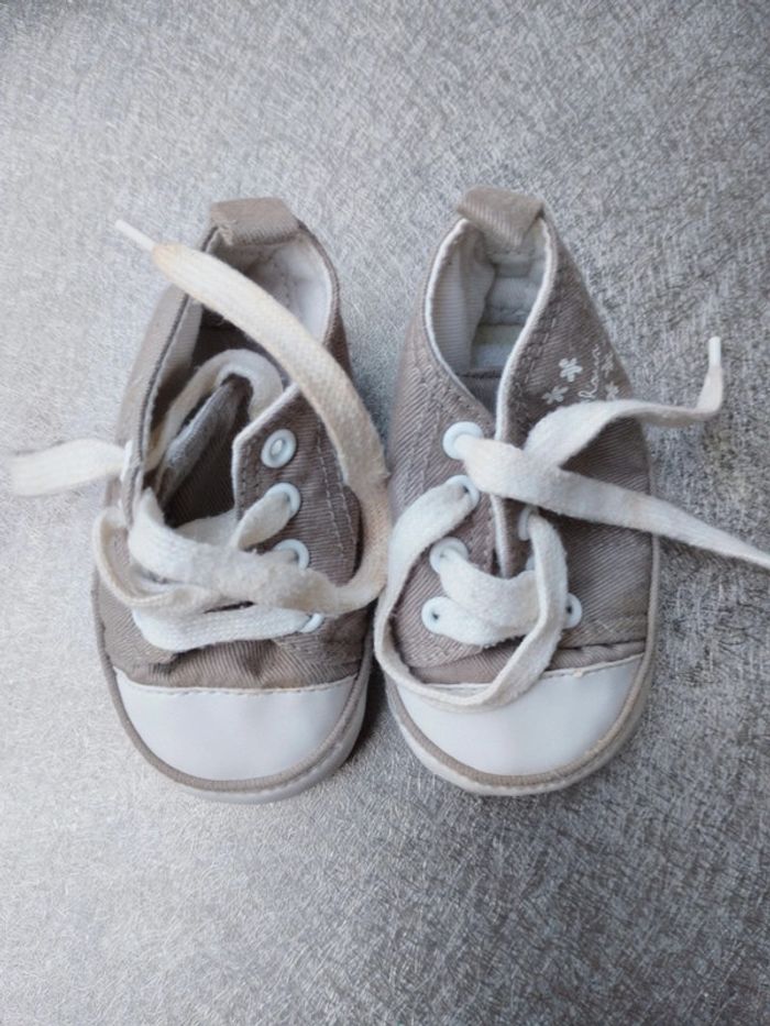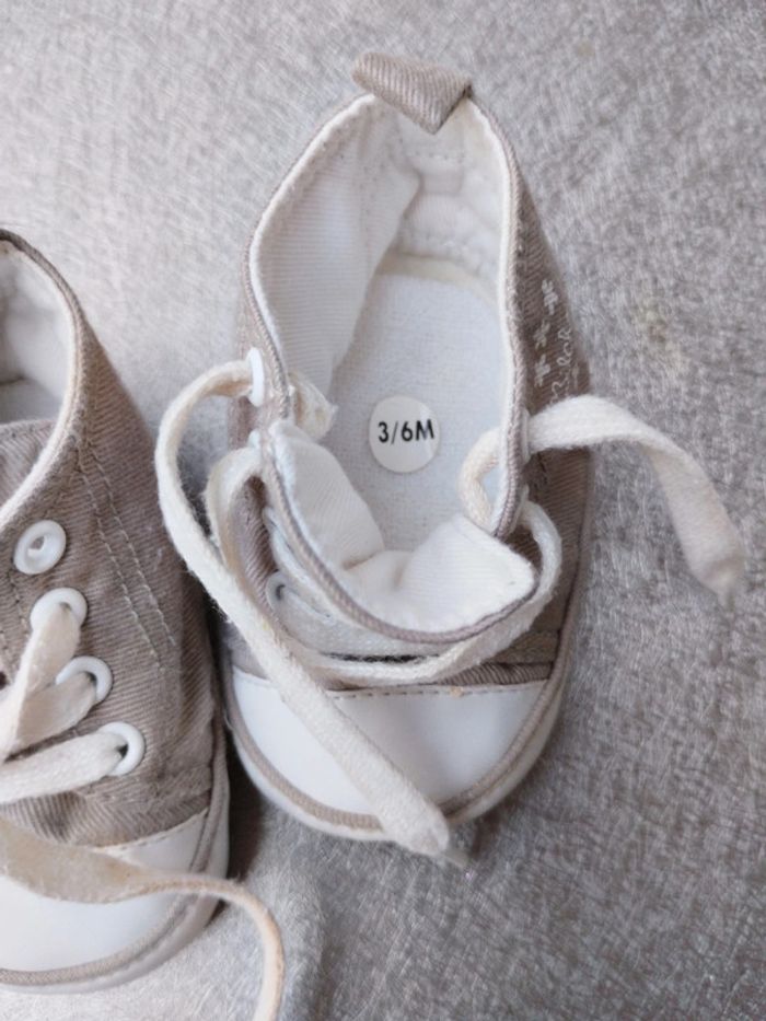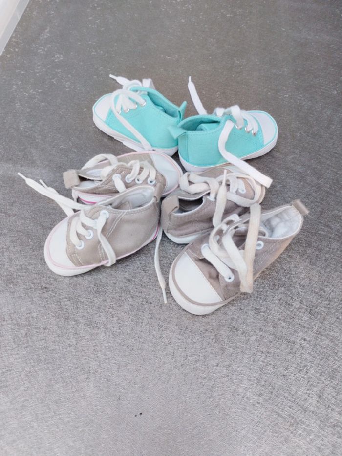 Lot de 3 paires de baskets bébé 3-6 mois fille Bleu neuves sans étiquette Marron liseré rose bon état Grises lacets tachés