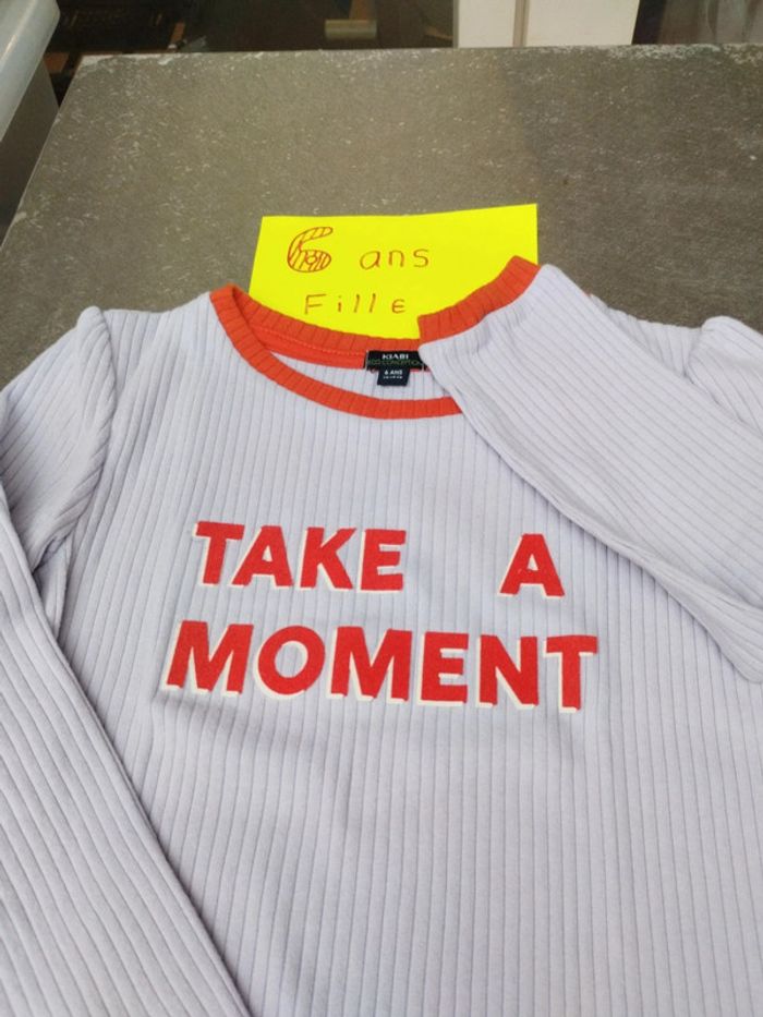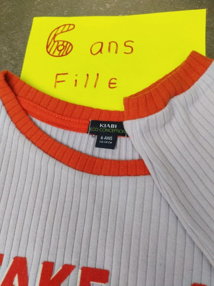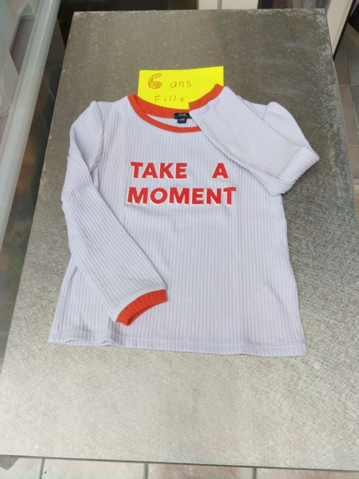 Tee-shirt manches longues Kiabi Fille 6 ans Mauve côtelé, bordures orange Take a moment