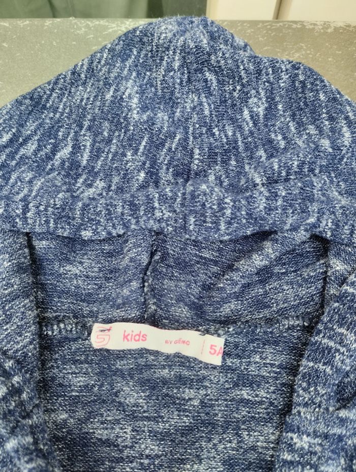 gilet long à capuche bleu chiné 5 ans fille Gémo kids