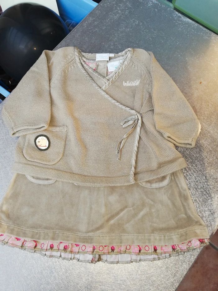 Lot de 12 articles 12 mois fille Ensemble, sous-pull, veste, robe, pantalon, jupe. Marques : Disney, Marèse, In Extenso, Tout Compte Fait, Sucre d'Orge, Miss Curie...