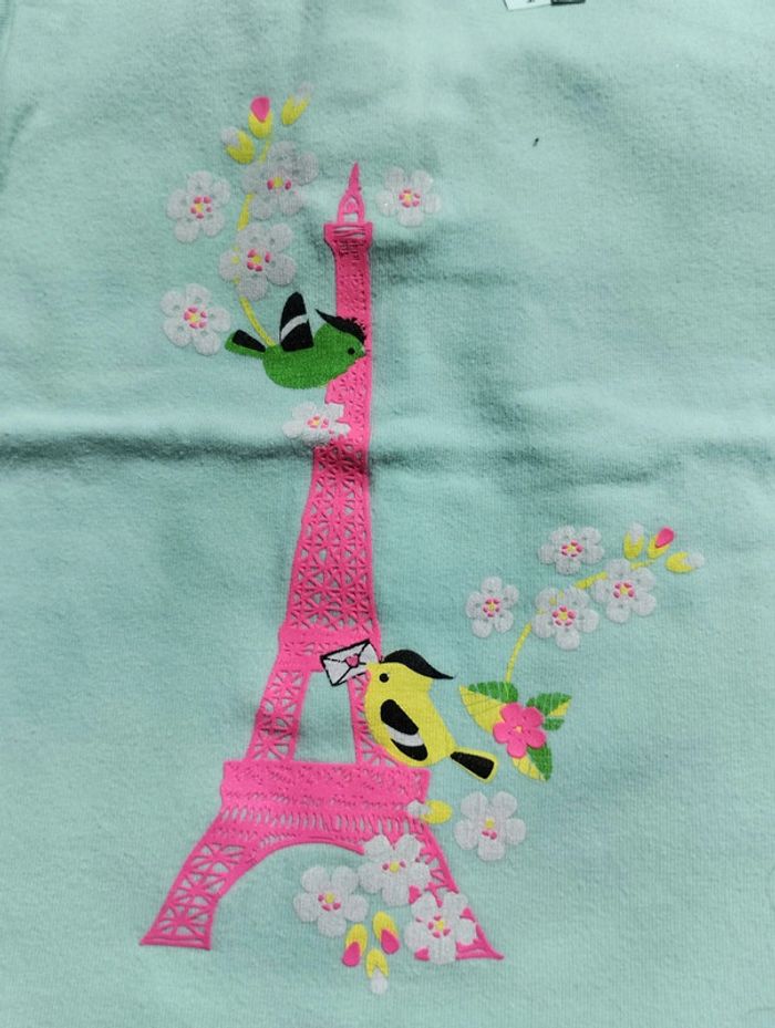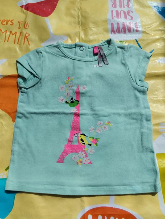 Lot de 2 tee-shirts 3 mois fille Orchestra Orange foncé coeur Vert d'eau tour Eiffel