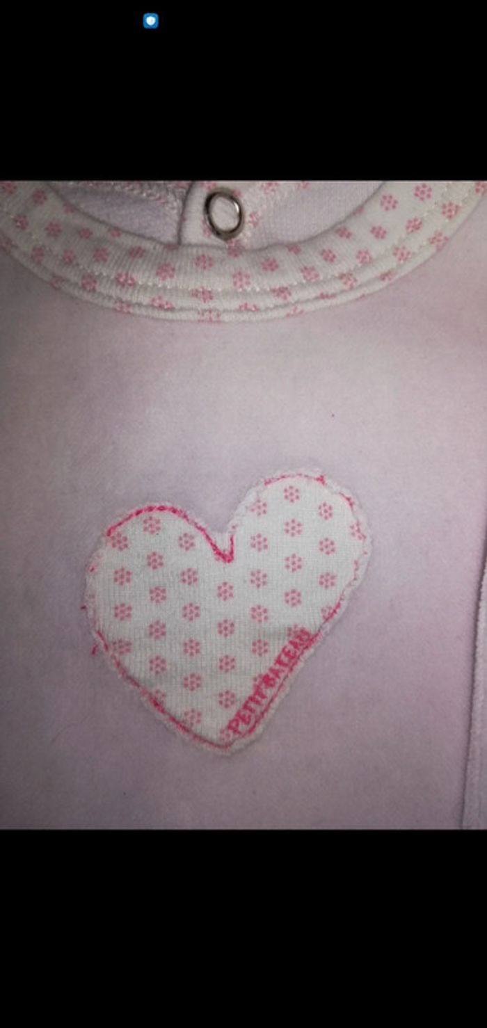 Pyjama rose clair 1 pièce Petit cœur en tissu sur le devant 3 mois fille Petit Bateau