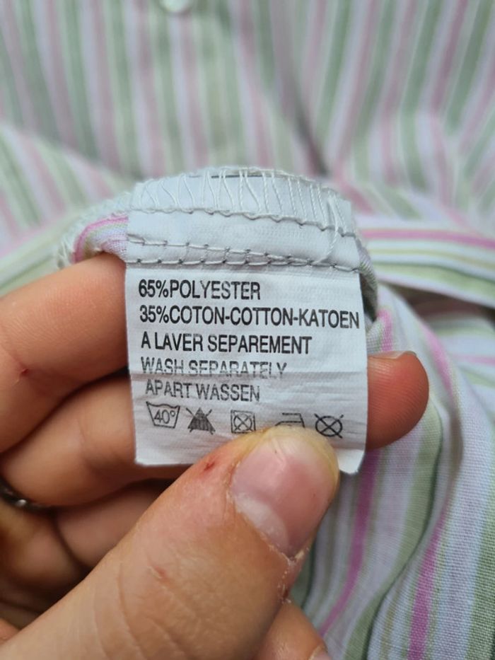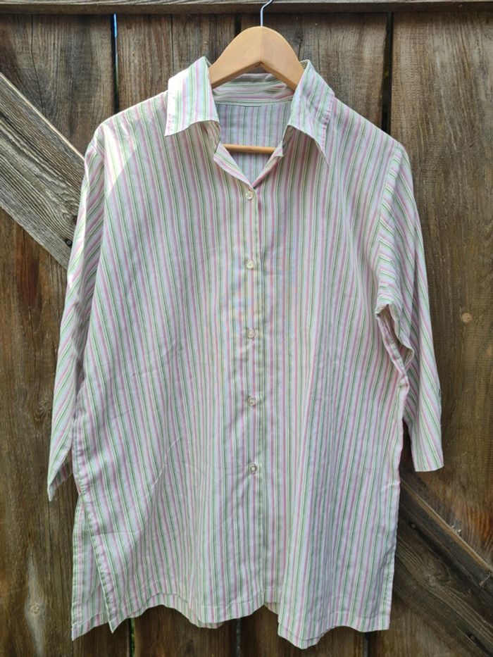 Peu porté. Chemise rayé blanc/rose/vert, sans marque. Taille 50/52. #emilie6715t50 #emilie6715t52