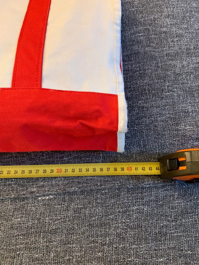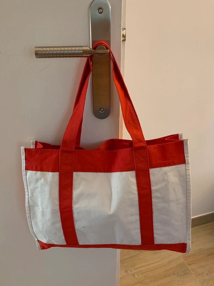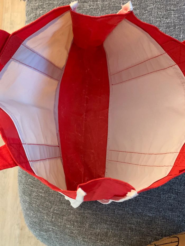 Sac cabas / sac de plage rouge et blanc Dimension en photos (Une petite tache voir derrière photo) D’autres sac sont disponibles dans mon dressing, N’hésitez pas à faire un petit tour….