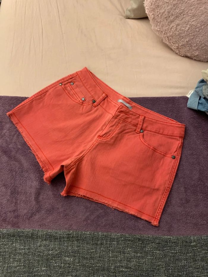 Short en jeans rouge délavé 3suisses taille 38 - photo numéro 1