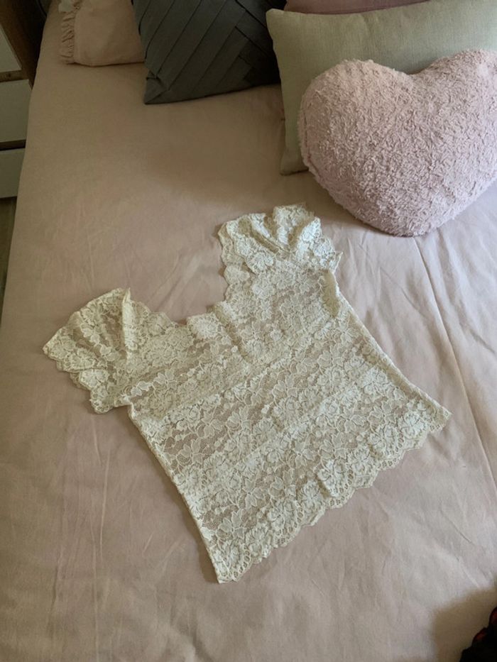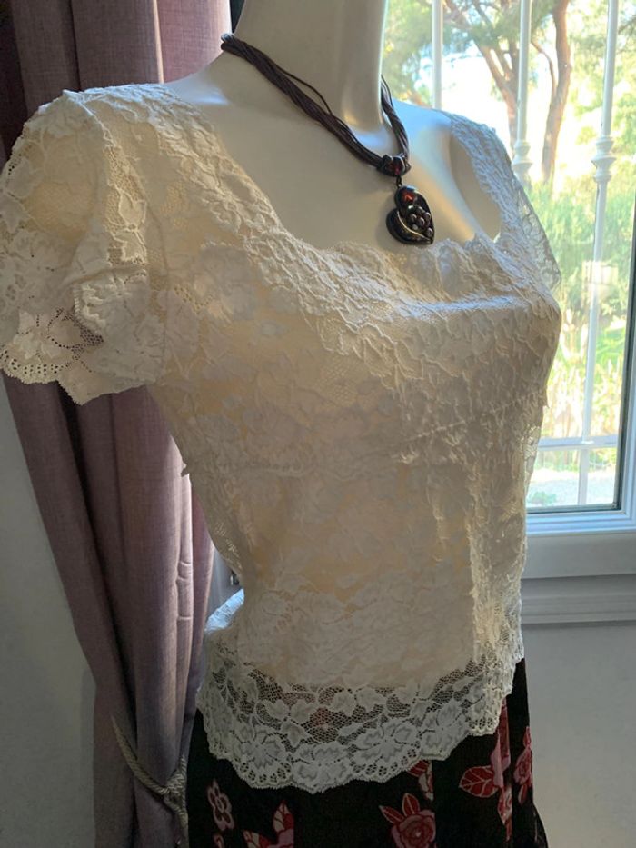 Haut en dentelle vintage manches courtes taille 40 crème - photo numéro 1