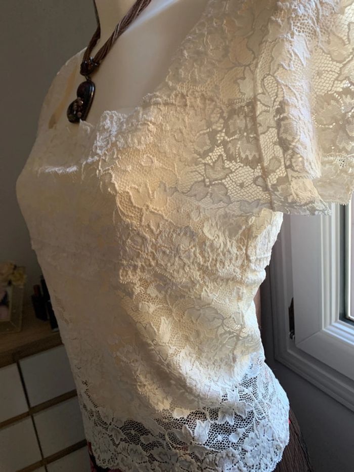 Haut en dentelle vintage manches courtes taille 40 crème - photo numéro 2