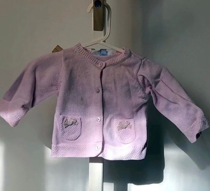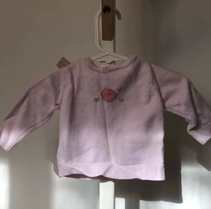 Gilet laine rose 3 mois légère tache (voir photo)