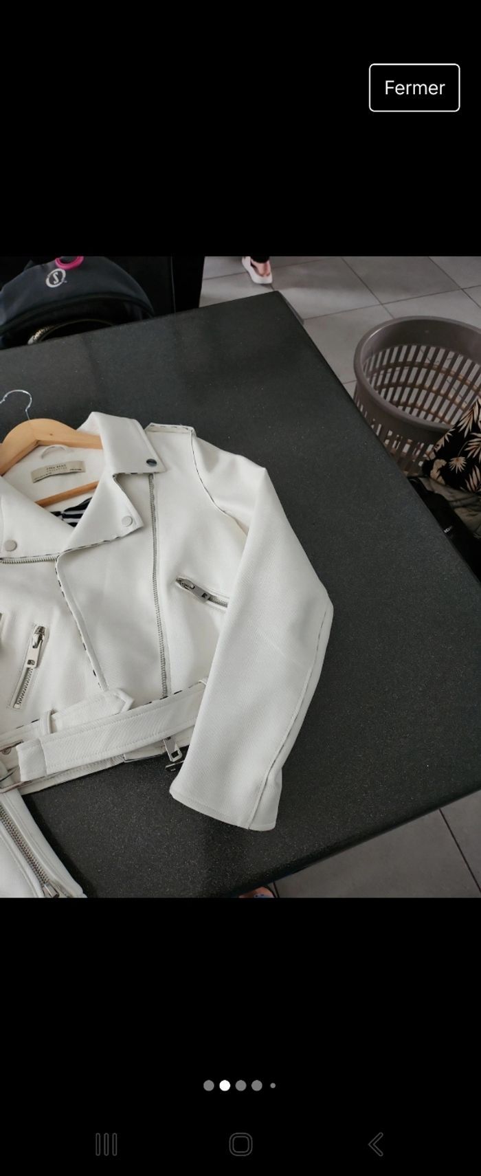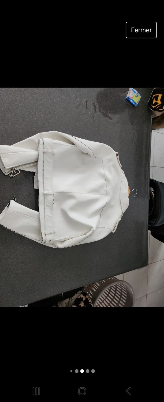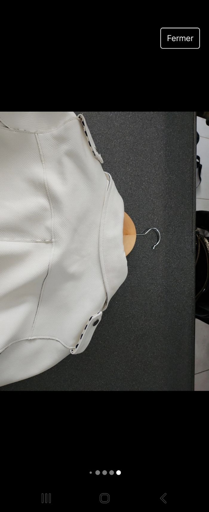 Elle est neuve. Elle est un peu arrachée au niveau du col ( envoyez MP pour plus de photos) à force d'être restée accroché au cintre et de ne pas etre utilisée.