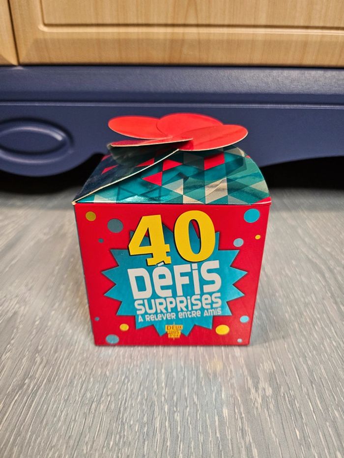 40 défis surprises à faire entre amis drôles et amusant Hachette livre Très bon état, jamais servi Prix : 2 €