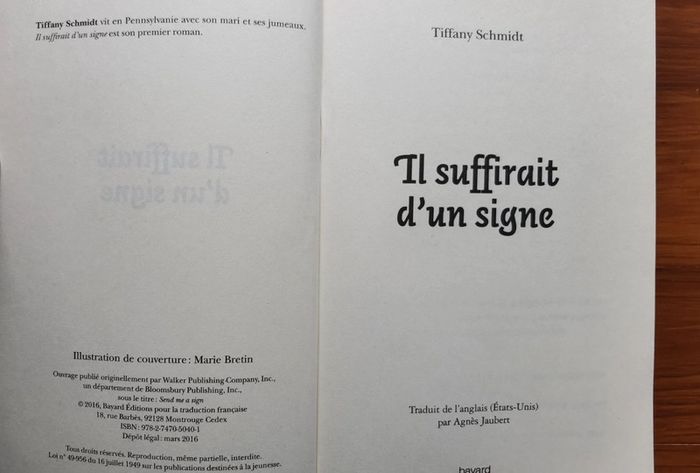 Livre Il suffirait d'un signe De Tiffany Schmidt - photo numéro 3