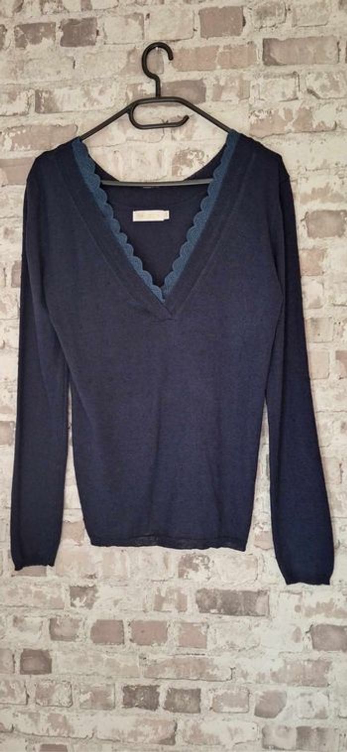 FEMME 36 / S N°2444 pull fin Bleu marine Tissu relief 35% polyester 28% nylon 22% acrylique 15% laine Col v , broderie anglaise Taille 36 / s Season 8,50€ Neuf plus d étiquette 🏷 #kelly_femmeT38