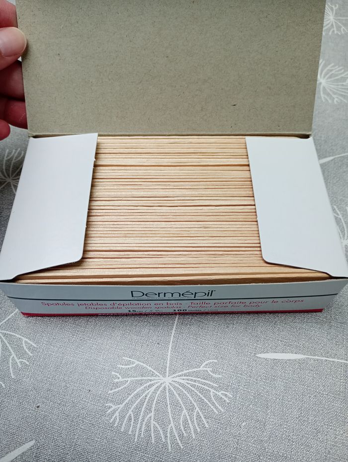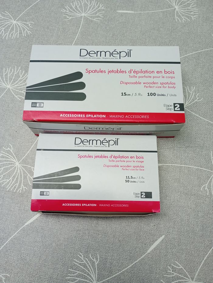 Deux boites de spatules dépilation jetables en bois. Une boite de spatules de 11,5 cm et une de 15 cm. Neuf