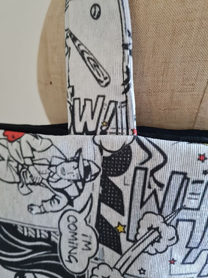 Pour le shopping, les courses, faites son marché, se promener ou encore aller à la plage... Pour les enfants idéal pour la bibliothèque, l'école ou les activités sportive. Ce tote bag vous suivra partout et de plus il est très tendance. Tote bag réalisé entièrement à la main doublé.