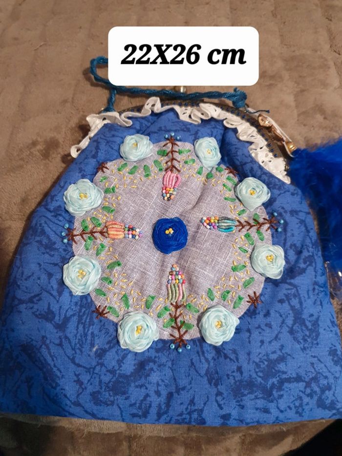 22 x 26 cm bourse doublée Faite maison avec grand soin ouverture porte monnaie Brodée main