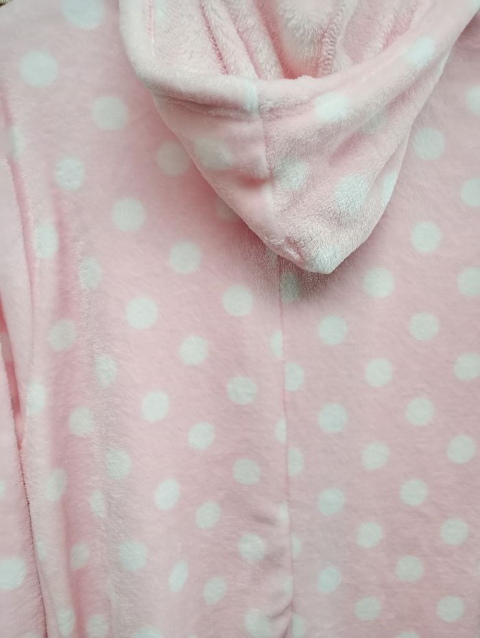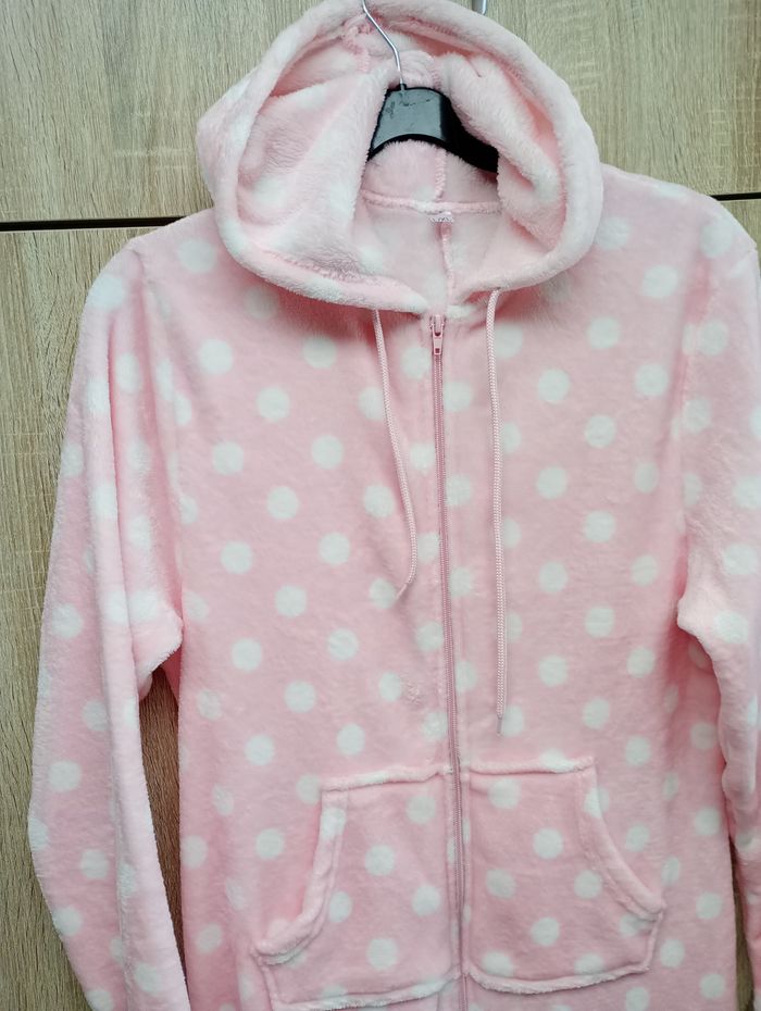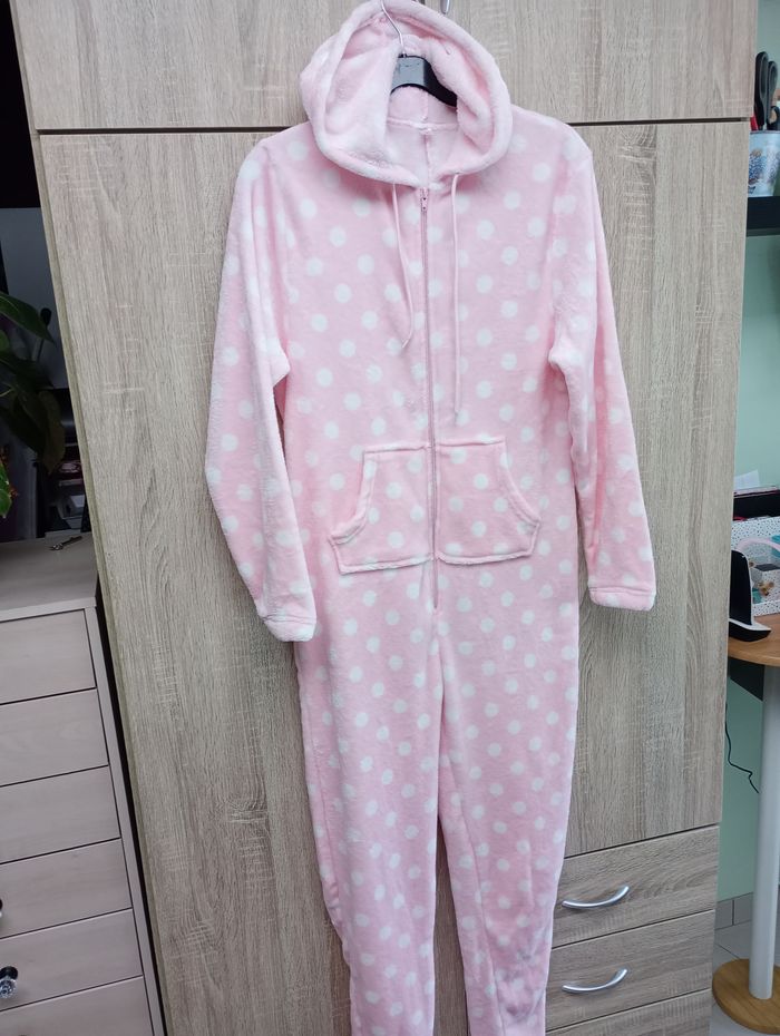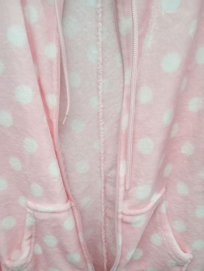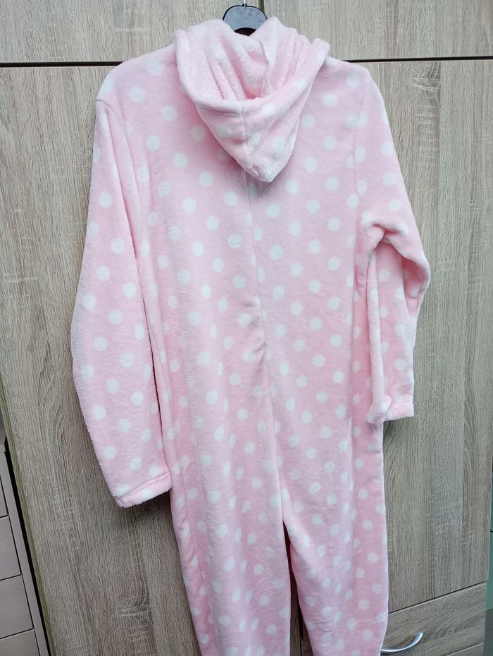 Combinaison tout douce rose avec pois blancs. Taille L/XL. Etat impeccable, portée une fois.